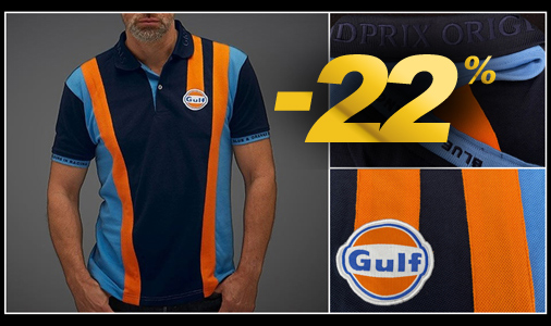 Polo homme Gulf Racing Couleur bleu marine / orange / bleu cobalt - Matière 65% Coton / 35% Polyester