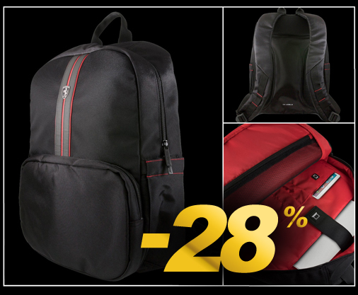 Sac à Dos Ferrari Compartiment ordinateur jusqu'à 15" - Poche intérieure pour stylos - Fermeture par zip Couleur Noir / Rouge - Matière 100% Polyester Ferrari FEURBP15BK
