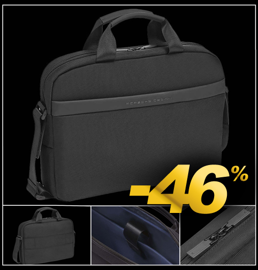 Porte Documents Porsche Design Voyager S Compatible avec ordinateur ou tablette 14.5" - Couleur Noir - Matière Nylon 3 poches internes dont une zippée - 1 poche sur l'avant - Dimensions 39 x 28 x 9 cm Passage pour trolley à l'arrière - 2 anses et 1 lanière réglable Porsche Design ONT01509.001