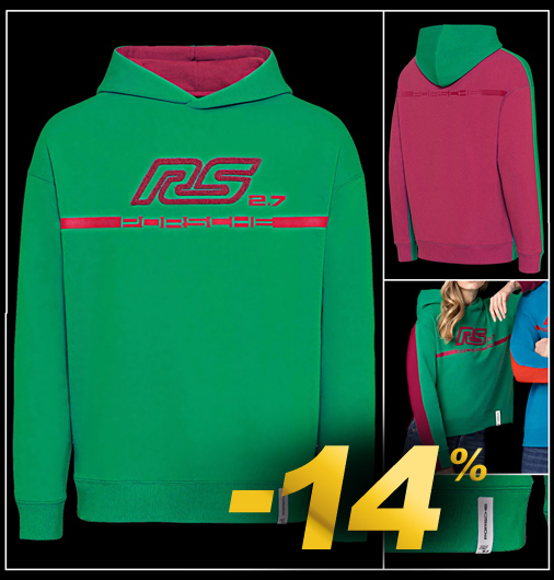 Hoodie femme Porsche RS 2.7 Hoodie avec capuche doublée - Couleur Vert / Bordeau Matière 50% Coton / 50% Polyester Porsche WAP956NRS2