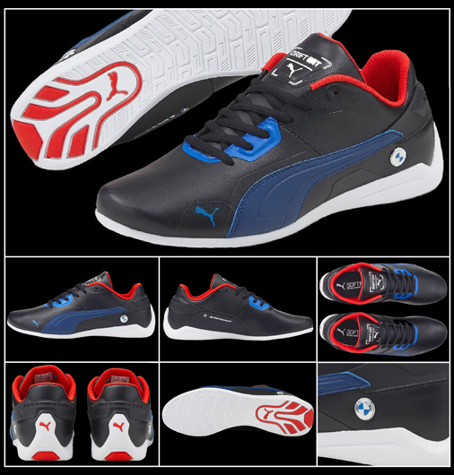 Chaussures homme BMW Drift Cat Delta by Puma Dessus Cuir synthétique - Doublure Textile - Semelle Caoutchouc Coupe basse - Lacets ronds - Couleur Noir / Bleu / Rouge Puma 307100-01