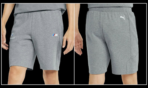 Short homme BMW by Puma Ceinture élastique avec lacet de serrage - Couleur Gris 2 poches latérales - Matière 77% coton / 23% polyester Puma 533374-03