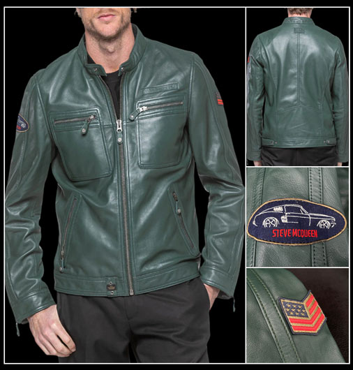 Veste en Cuir Steve McQueen Dennis Patch Steve McQueen sur l'avant et les manches Cuir embossé Steve McQueen sur la poitrine et au niveau de la nuque Fermeture principale par zip - 2 poches latérales - 2 poches zippées sur l'avant Cuir de haute qualité - Couleur : Vert - Matière : Cuir de mouton Classic Legend Motors - 27941-1504