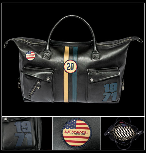 Le Mans Steve McQueen 72h Black Leather Weekender Bag
