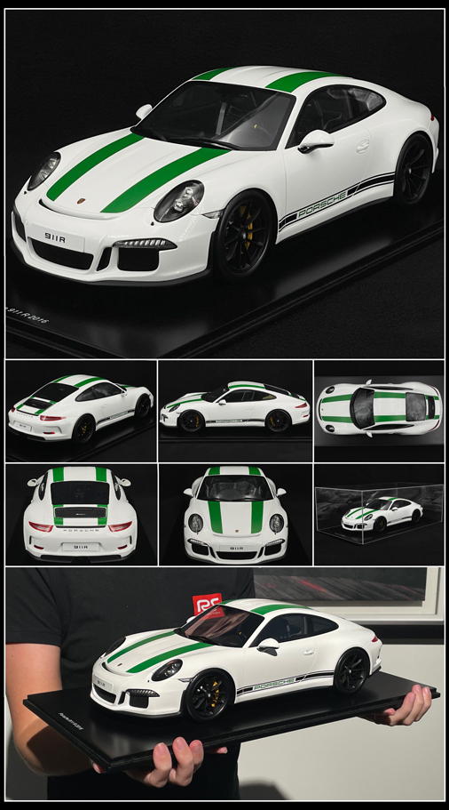 Porsche 911 R 2016 Blanc / Bandes Vertes 1/12 - Schuco 450046900 499,95 € TTC / Incl. Taxes
