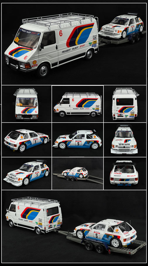NEW Set Rallye Peugeot 205 T16 n° 5 with Trailer Winner Tour de Corse 1986 - 1 : 18