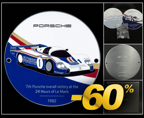 Badge de Grille Porsche Rothmans - Vainqueur 24h Le Mans 1982 Autocollant et vignette pour fixation à la fenêtre inclus Diamètre 9,5 cm - Matière 95% zinc / 5% peinture acrylique Boîte de rangement Porsche - Fabriqué en Allemagne Porsche WAP0508110NRCG Edition limitée - 956 exemplaires numérotés