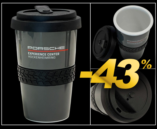 Mug Porsche Experience Center Hockenheimring Matière Porcelaine - Contenance 400 ml - Couvercle amovible et étanche Bande agrippante au design de pneus - Couleur Gris Porsche WAP1180010NEOR