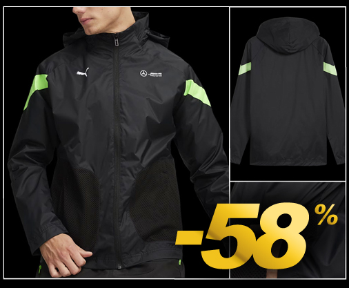 Veste à Capuche homme Mercedes-AMG F1 Matière 100% Polyamide - Couleur Noir - Capuche réglable Fermeture zippée - 2 poches latérales Puma 623739-01