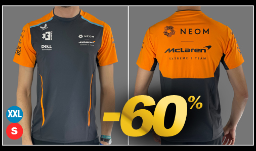 T-shirt homme McLaren F1 - Tailles S / XXL seulement Matière 88% Polyester / 12% Elasthanne - Couleur Gris / Orange McLaren TM5280XE-217