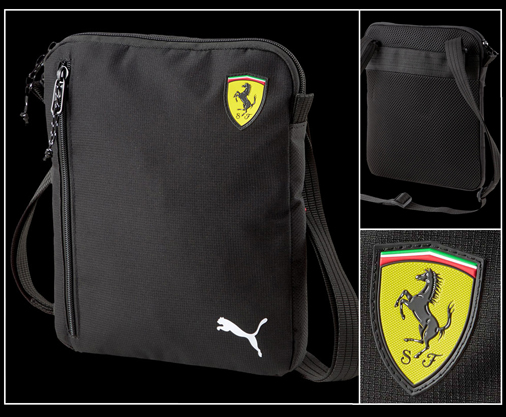 Sacoche à bandoulière Ferrari by Puma 1 poche principale - 1 poche de face - 1 poche intérieure Bandoulière ajustable - Couleur noir - Matière 100% Polyester Dimensions 27 x 23 x 3 cm - Poids 0.15 kg Puma 0784060X 34,95 € TTC / Incl. Taxes