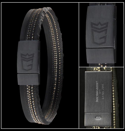 Bracelet Mongrip Kyalami Argent Noir Cordon en pneu course - Matière Argent noir rhodié 925/1000 Largeur 6.5 mm - Poids 6g approx. - Avec boite cadeau Fabriqué à la main en Italie