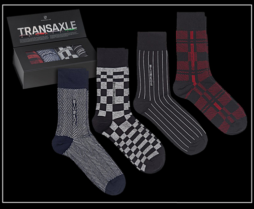 Coffret 4 Paires Chaussettes mixtes Porsche 924 1 paire design Pin stripe 924 - 1 paire design Tartan dress 924 1 paire design Pascha 928 - 1 paire design Herringbone 968 Matière 88% coton / 10% Polyamide / 2% Elasthane Porsche WAP445L924 59,95 € TTC / Incl. Taxes