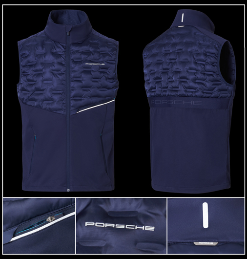 Veste sans manches homme Porsche Sport Collection Veste Softshell bi-matière chaude et confortable - Coupe-vent et imperméable Partie supérieure légèrement matelassée - Col montant droit - Fermeture par zip 2 poches sur le devant - 1 poche poitrine zippée - Matière 100% Polyester Eléments réfléchissants discrets devant et derrière Couleur Bleu marine/ détails contrastant Bleu requin Porsche WAP532M0SP 149,95 € TTC / Incl. Taxes