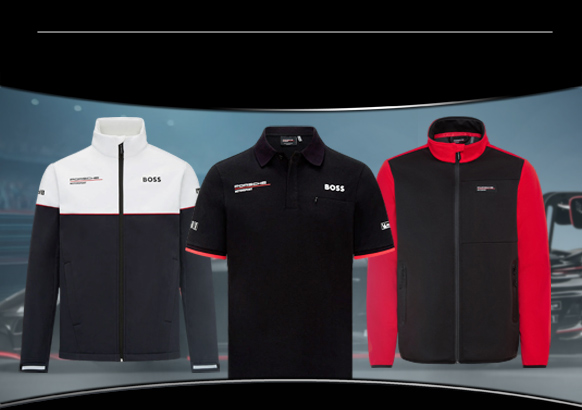 Veste homme Porsche x BOSS Imperméable, confortable et respirante - Veste coupe-vent softshell coupe droite Couleur noir / blanc / détails rouge - Matière 100% polyester 2 grandes poches et 1 poche intérieure zippées Avec kit d'accessoires Porsche Motorsport Porsche Design WAP435P0MS 249,95 € TTC / Incl. Taxes