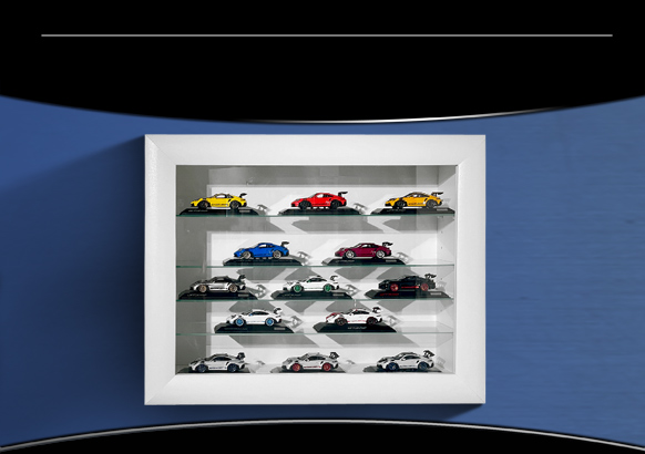 Vitrine Murale Pour 8 à 60 miniatures Porsche à l'échelle 1/43 1/24 1/18 Finition remarquable - Porte en verre encadrée en mélaminé Magnifique profil arrondi - Montage facile avec notice claire et détaillée Montage des charnières à droite, à gauche ou en haut Maintien de la porte par aimant - Plaques de fixations fournies Supports de tablettes garnis de caoutchouc antidérapant LxHxP : 62,5 x 50 x 17,3 cm