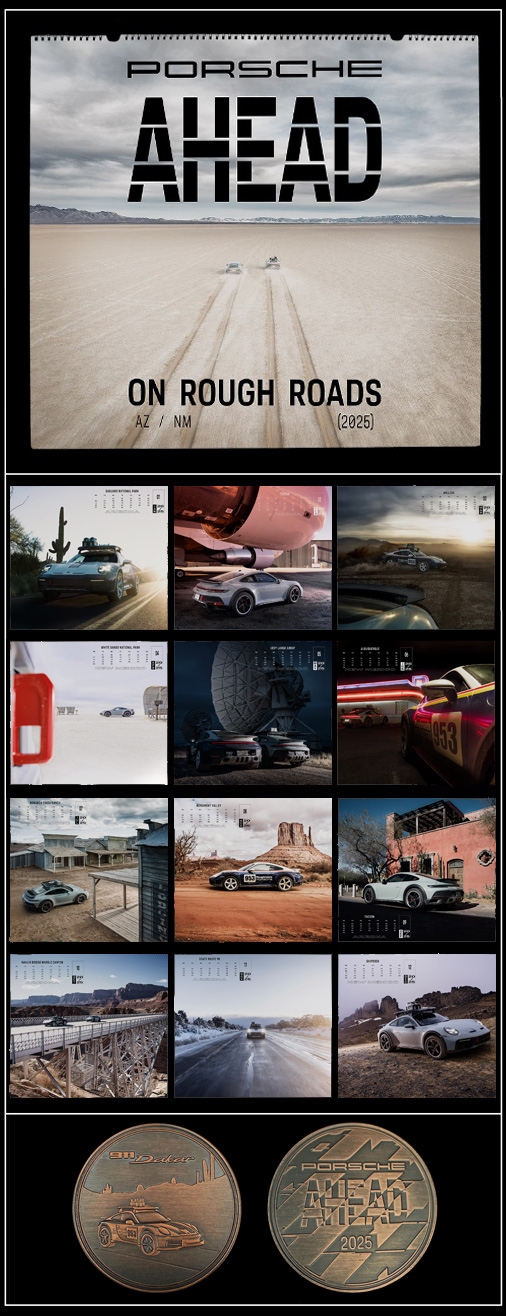 Porsche 2025 Calendar with a Commemorative Porsche 911 Medal