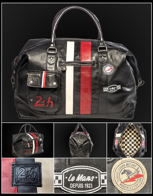 Très Grand sac de voyage en Cuir 24h Le Mans Dimensions 47 x 54 x 24 cm - Grand compartiment interne - Fermeture principale zippée 1 poche zippée et 1 poche à pression sur le devant - Deux anses non réglables Matière Cuir de mouton - Couleur Noir - Volume 60L - Poids 1.7 kg 379,95 € TTC / Incl. Taxes
