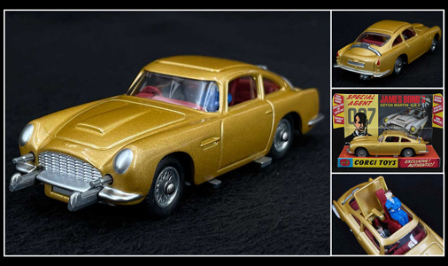 Aston Martin DB5 1965 - James Bond Goldfinger Avec les Gadgets du film : Mitrailleuses rétractables, écran pare-balle, siège éjectable, etc Or 1/46 - Corgi Toys CD54321015 49,95 € TTC / Incl. Taxes