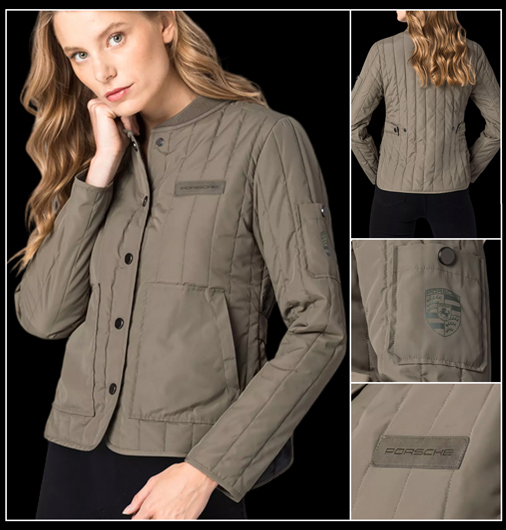 Veste femme Porsche Veste matelassée légèrement chatoyante - Couleur Vert kaki Col baseball et taille ajustable par boutons - Matière 100 % polyester Deux poches latérales / Une poche intérieure Porsche WAP724NPOR 219,95 € TTC / Incl. Taxes