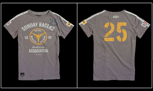 T-shirt homme - Sunday Racers Sunday Racers Gentlemen Association sur le devant Ecusson tissu cousu sur chaque manche Bande de renfort encolure Couleur: gris 100% Coton