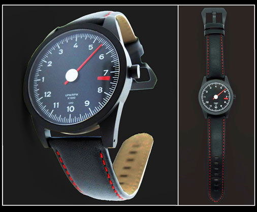 Montre compte-tours Porsche 911 mono-aiguille - Noir Mouvement quartz Ronda 762 Swiss-made Bracelet cuir noir, surpiqûres contrastées rouges Boitier en acier inoxydable PVD noir Saphir très résistant, traité anti-rayures et anti-reflets Etanche jusqu'à 10 ATM Diamètre 43 mm Garantie 12 mois Livré dans sa boite de présentation 349,95 € TTC / Incl. Taxes