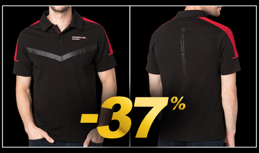 Polo homme Porsche Motorsport Tissu élastique confortable et respirant - Matière 95% coton / 5% elasthane Inscription Porsche dans le dos - Couleur Noir / Rouge