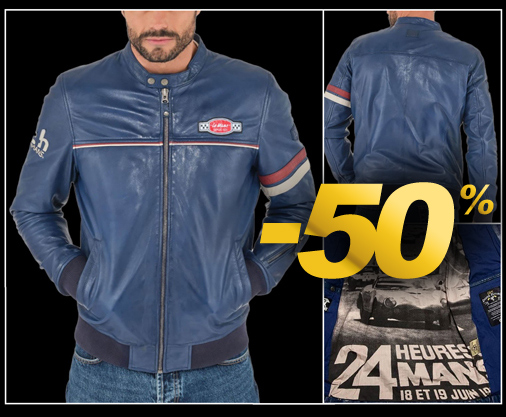 Veste en cuir homme 24h Le Mans Matière 100% cuir d'agneau - Couleur Bleu Royal - 2 poches latérales 2 poches intérieures - 1 poche sur la manche gauche - Fermeture zippée