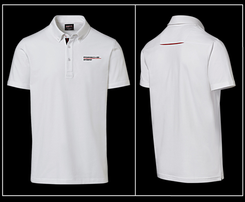 Polo homme Porsche Motorsport Couleur blanc / détails rouge / blanc - Matière 95 % coton / 5 % elasthane Tissu technique élastique confortable et respirant Porsche WAP801LFMS 59,95 € TTC / Incl. Taxes