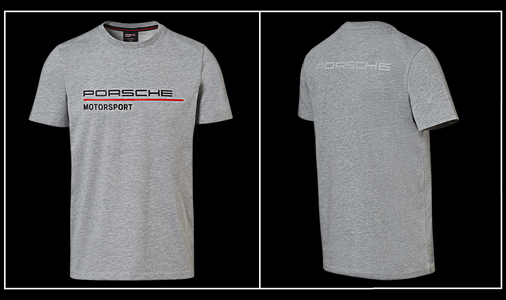 T-shirt homme Porsche Motorsport Couleur gris / détails rouge / noir - Matière 95 % coton / 5 % elasthane Tissu élastique confortable et respirant Porsche WAP809LFMS 39,95 € TTC / Incl. Taxes
