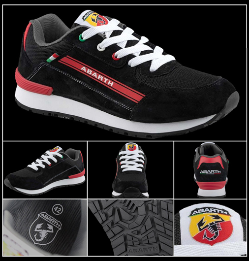 Chaussures homme Abarth Competizione 500 Matière Cuir suédine / Polyurethane - Semelle EVA / Caoutchouc Doublure d’excellente qualité - Couleur Noir / Rouge 69,95 € TTC / Incl. Taxes