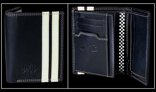 Portefeuille en Cuir Jacky Ickx 24h Le Mans Portefeuille pliable verticalement en 3 volets avec porte-monnaie Dimensions 10 x 13.5 x 2 cm - Matière 100% cuir - Couleur Bleu Marine 10 compartiments cartes de crédit - 1 compartiment cartes d'identités 1 compartiment billets de banque Classic Legend Motors 26977-1000 99,95 € TTC / Incl. Taxes