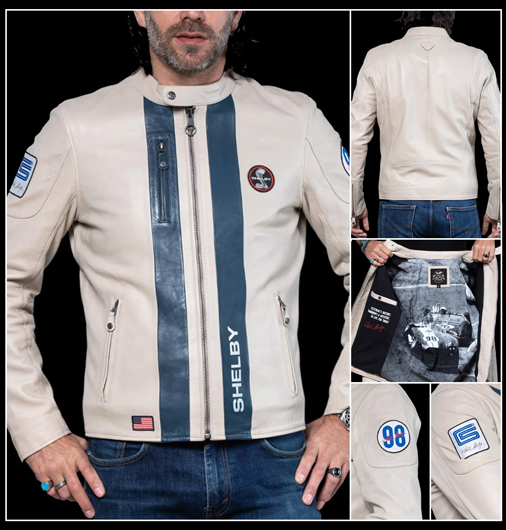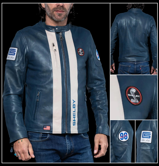 Veste en cuir homme Shelby Cobra Matière 100% Cuir - Doublure 100% Coton - Fermeture zippée - 3 Poches zippées Col droit - 1 poche intérieure - Manches zippées - Couleur Bleu Royal / Blanc Classic Legend Motors 27424-0012 489,95 € TTC / Incl. Taxes