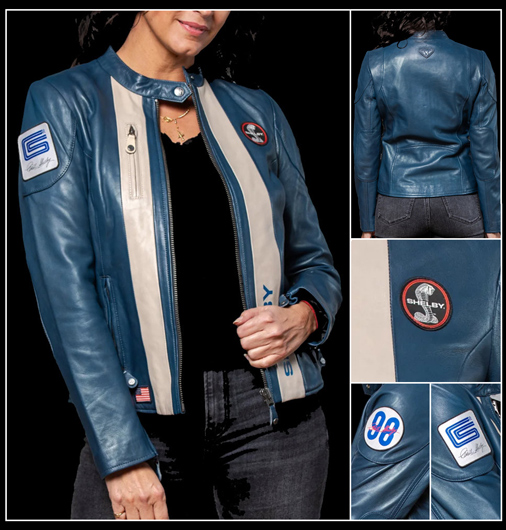 Veste en cuir femme Shelby Cobra Matière 100% Cuir - Doublure 100% Coton - Fermeture zippée - 3 Poches zippées Col droit - 1 poche intérieure - Manches zippées - Couleur Bleu Royal / Blanc Classic Legend Motors 27425-0012 439,95 € TTC / Incl. Taxes