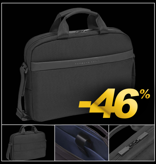 Porte Documents Porsche Design Voyager S Compatible avec ordinateur ou tablette 14.5" - Couleur Noir - Matière Nylon 3 poches internes dont une zippée - 1 poche sur l'avant - Dimensions 39 x 28 x 9 cm Passage pour trolley à l'arrière - 2 anses et 1 lanière réglable Porsche Design ONT01509.001