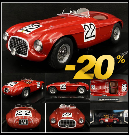 Ferrari 166MM Barchetta Spider n°22 - Vainqueur 24h Le Mans 1949 1/18 - KK Scale KKDC180913