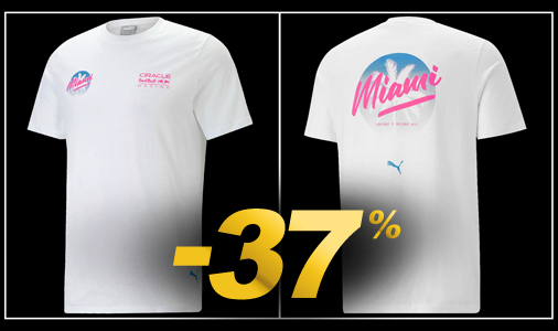 T-shirt homme Max Verstappen F1 Vainqueur GP Miami 202 - Tailles S / XL seulement Couleur Blanc - Matière 70% Coton / 30% Polyester Puma 701221809-001