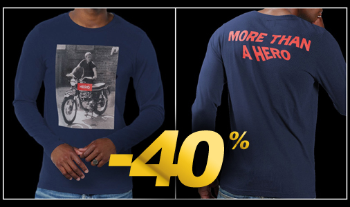 T-shirt Manches Longues homme Steve McQueen Triumph 1964 Couleur Bleu Encre - Matière 100% coton Hero Seven H22121