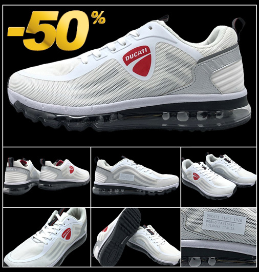 Chaussures homme Ducati Moto GP Bagnaia Semelle air en caoutchouc - Doublure tissu d’excellente qualité Matière Simili Cuir - Couleur Blanc