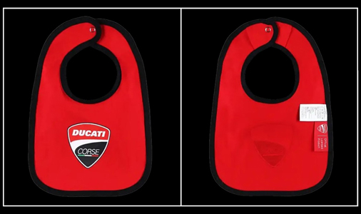 Bavoir Bébé Ducati Moto GP Bagnaia Taille unique - Bouton pression de fermeture Couleur Rouge - Matière 100% coton Ducati DU2286002 19,95 € TTC / Incl. Taxes