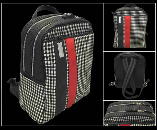 Sac à dos / Backpack 911 Classic Pepita 3 poches extérieures - Nombreux aménagements intérieurs 1 poignées / 2 bretelles - Matière Vinyl Basketweave / tissu pied de poule / cuir Ceintures de 911 GT3 RS en décoration Fermeture éclair métalliques - Dimensions 33 x 18 x 21 cm 349,95 € TTC / Incl. Taxes