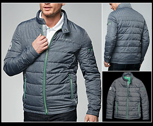 Veste homme Porsche 911 Carrera RS 2.7 Veste matelassée légère au look sportif - Rembourrage haute performance Matière 66 % nylon / 34 % polyester - Doublure 100 % polyester Couleur gris / vert vipère - Sac de rangement 12 x 12 x 24 cm Porsche Design WAP957