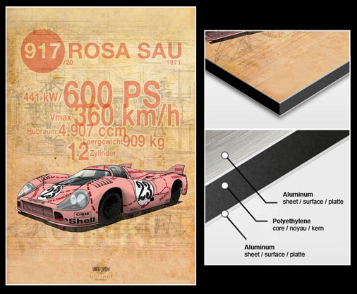Illustration - Porsche 917 Rosa Sau 40 x 60 cm - Impression sur aluminium
