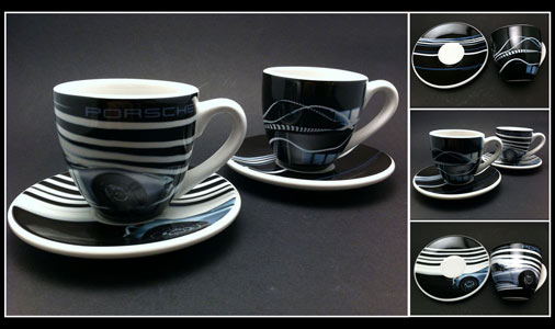 Set 2 tasses expresso avec soucoupes - Porsche 918 Spyder & Porsche 911 Hauteur 5,4 cm - Diamètre 5,8 cm - Diamètre soucoupe 9,4 cm Passe au lave-vaisselle - Fabriqué en Allemagne Edition limitée - 2012 exemplaires numérotés Livré en boite carton neutre