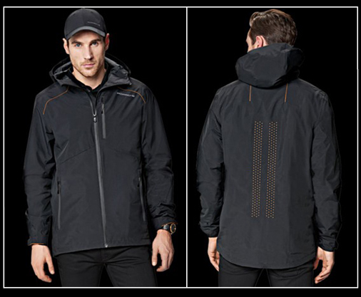 Veste Homme Porsche Sport 911 Collection Veste imperméable doublée, chaude et légère à la fois Détails intelligents : passages pour écouteurs, montre 2 poches extérieures zippées - 1 poche intérieure profonde Couleur noir / or - Matière : 100% polyamide Porsche Design WAP402