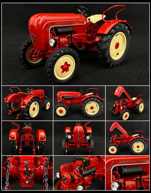 And don't miss the legendary Porsche Diesel Junior with its opening bonnet, which includes some neat details to showcase the "people's tractor", which was designed to replace horses at the end of the 30s.