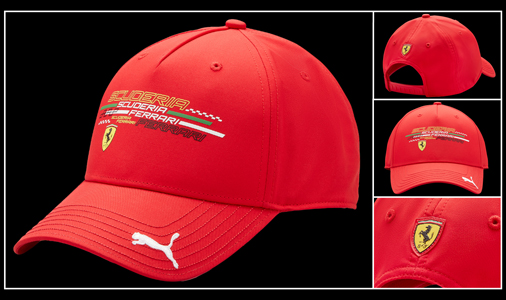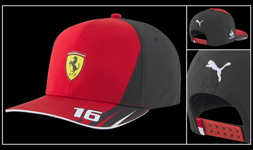 Casquette Charles Leclerc Ferrari Formule 1 by Puma Taille réglable - Couleur : Rouge / Noir Matière : 100% polyester - Puma 701219170-001 39,95 € TTC / Incl. Taxes