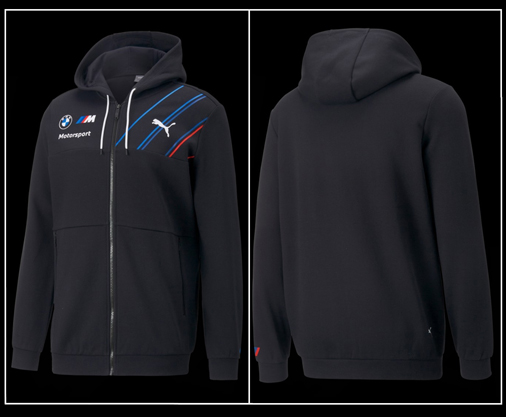 Hoodie homme BMW Motorsport by Puma 2 poches latérales zippées - Capuche réglable par cordon Couleur : Gris Anthracite - Matière : 67% coton / 33% polyester BMW 701219208-001 119,95 € TTC / Incl. Taxes