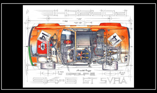 Reproduction d'un dessin original de Sébastien Sauvadet 914/6 GT n°14 - Air Cooled Racing Group 8 Dimensions : 30 x 40 cm Edition limitée - 200 exemplaires numérotés et signés 29,95 € TTC / Incl. Taxes
