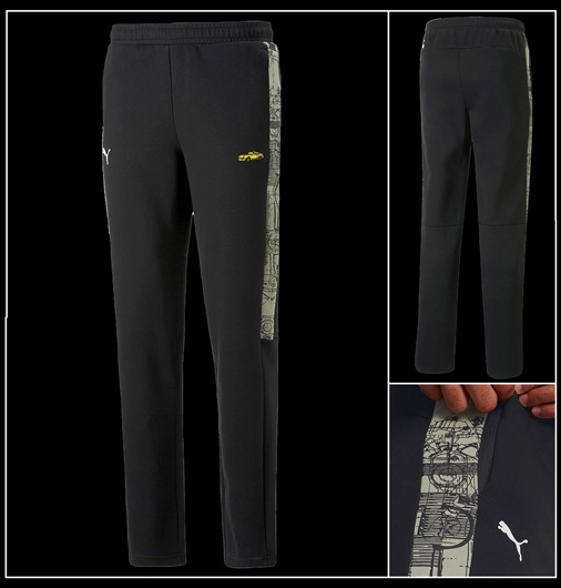 Pantalon homme Porsche Turbo by Puma Taille et chevilles élastiquées - 2 poches latérales Couleur Noir / Jaune - Matière 77 % Coton / 23 % Polyester Puma 533780-01 79,95 € TTC / Incl. Taxes